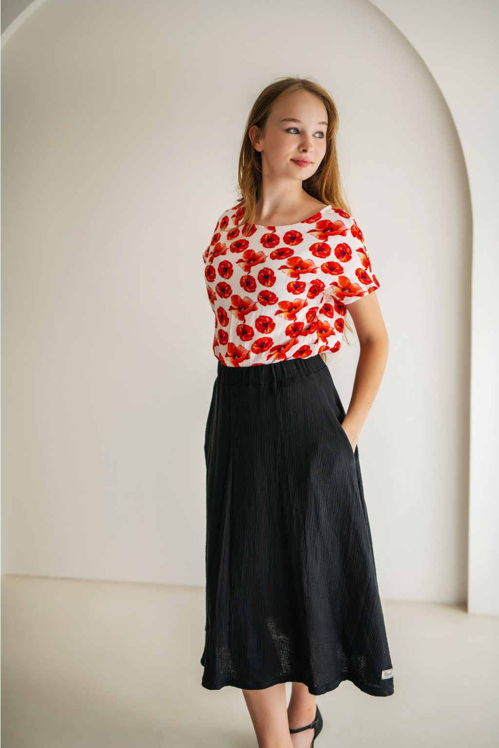 Sukně má kapsy, takže kromě stylu nabízí i praktičnost – konečně kousek, kde si můžeš pohodlně schovat ruce nebo pár nezbytností. Nos ji ležérně s tričkem a sandály, nebo si ji vezmi elegantně k halence a podpatkům – možnosti jsou nekonečné.