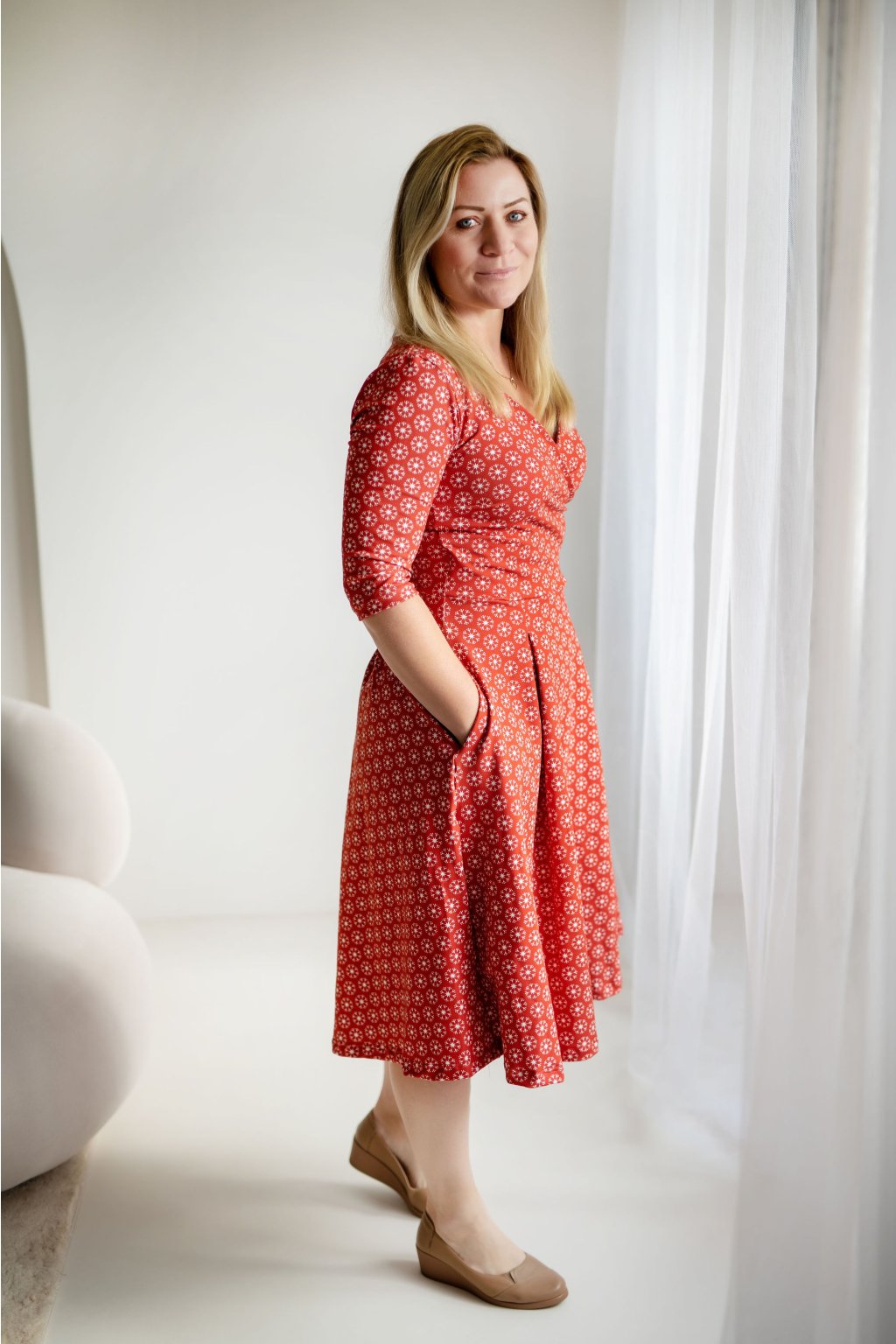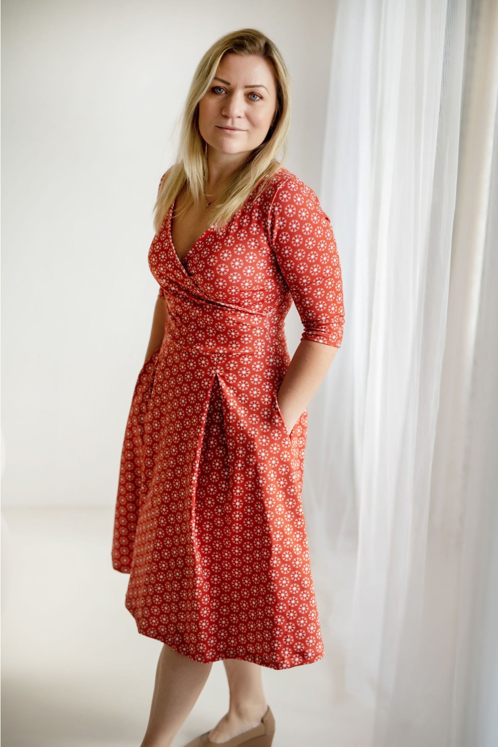 A když si potřebujete schovat ruce před podzimním vánkem nebo uložit drobnosti, jsou tu praktické kapsy. Malý detail, který však dělá šaty dokonalým společníkem na každý den.