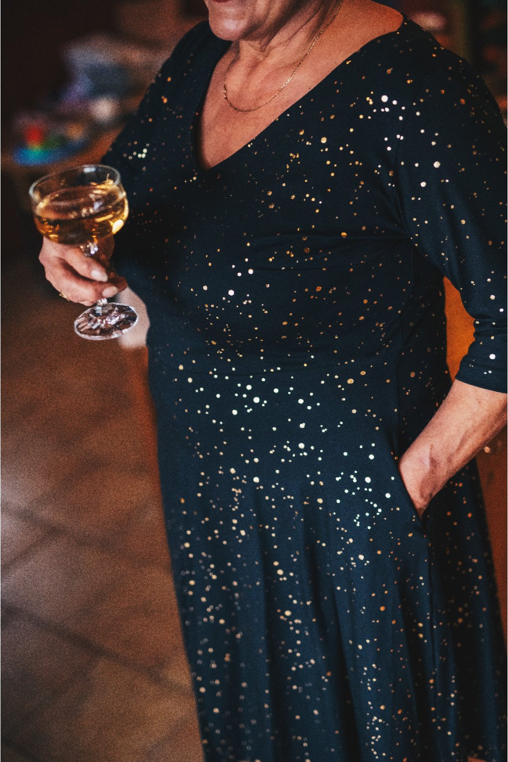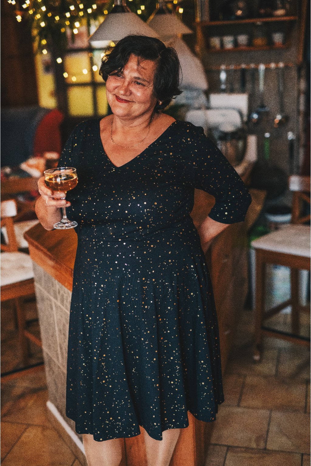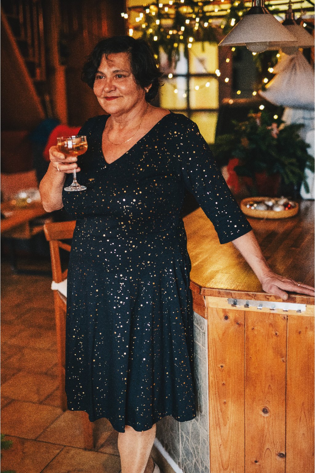 Šaty jsou ušité z kvalitního materiálu, který se jemně přizpůsobí vaší postavě, a zároveň drží svůj tvar. Výstřih do V lichotí vašemu dekoltu a prodlužuje siluetu. Půlkolová sukně je navržena tak, aby jemně obklopila vaše boky a stehna, aniž by je zvýrazňovala. 3/4 rukávy decentně zakryjí paže, což oceníte při každodenním nošení i při speciálních příležitostech. A samozřejmě nechybí kapsy, které poskytují nejen praktičnost, ale i pohodlí.